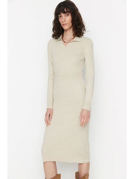 trendyol Sukienka dzianinowa w kolorze beżowym rozmiar: S