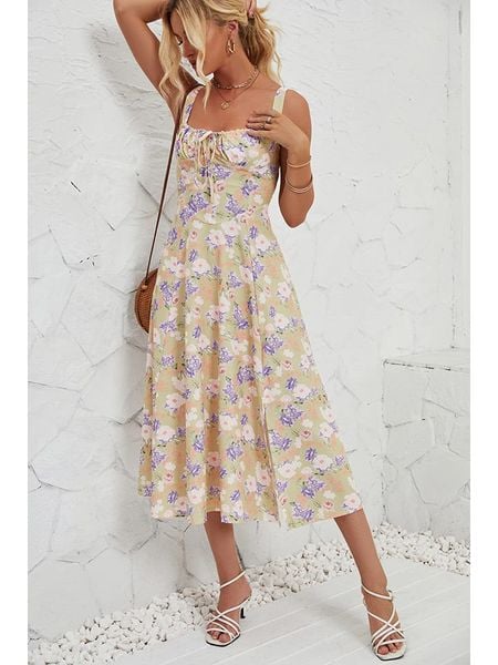 – ramiączka: szerokie- dekolt: karo- krój: litera A- wzór: kwiatowy
