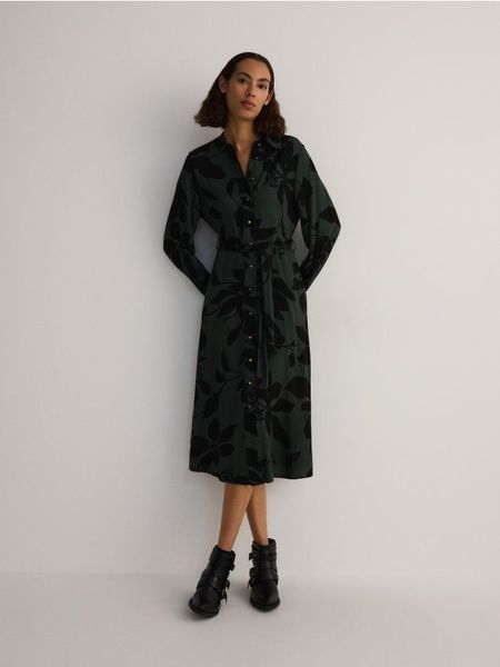 Koszulowa sukienka midi z wiskozy – ciemnozielony