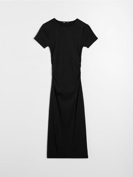Sinsay – Bawełniana sukienka midi z marszczeniem po bokach – czarny –