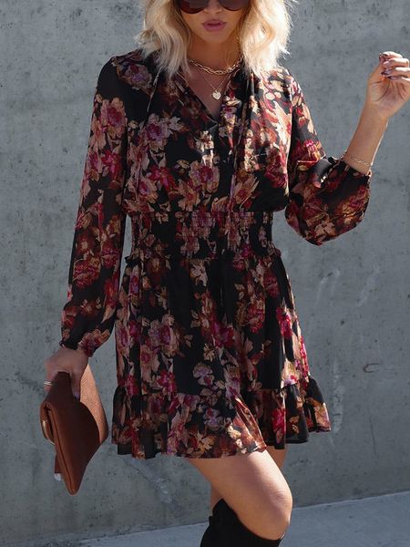 – dekolt: V- krój rękawów: bufiasty- talia: elastyczna- krój: luźny- wzór: kwiatowy