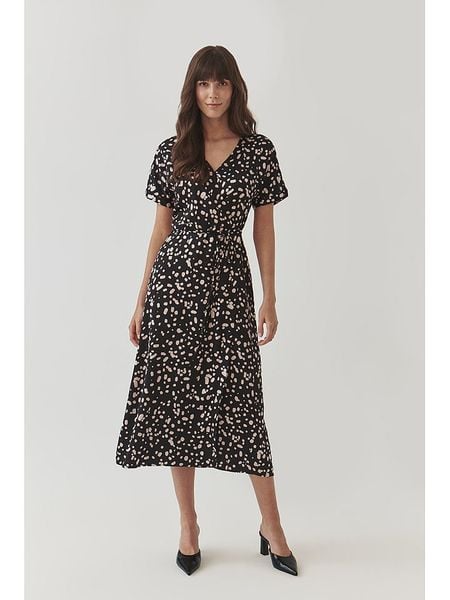 – czysta wiskoza- dekolt: V- zdejmowany pasek: tkanina- krój: litera A- wzór: na całości