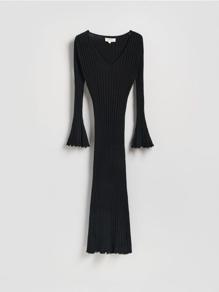 Prążkowana sukienka z wiskozy – czarny