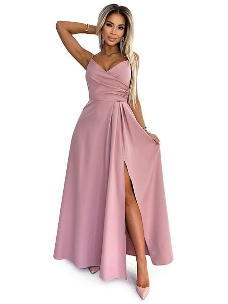 – dekolt: V- ramiączka: wąskie- zapięcie: suwak na plecach- dolny brzeg: z rozcięciem- krój: litera A- look: jednokolorowy
