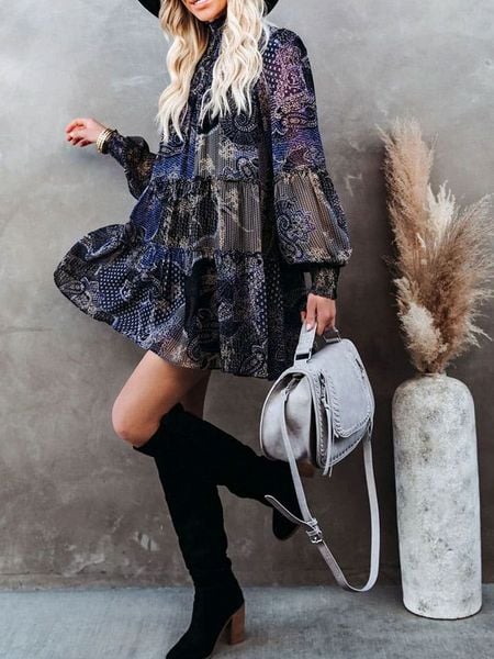 – kołnierz: stójka- krój rękawów: bufiasty- zakończenie rękawów: marszczenie- krój: luźny- wzór: orientalny