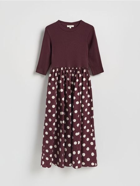 Bawełniana sukienka midi – mahoniowy