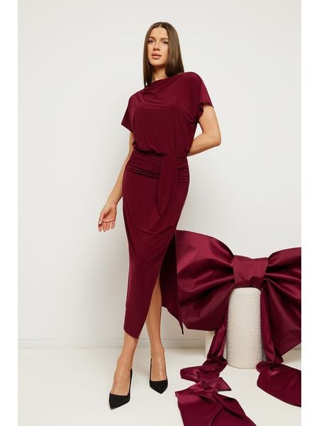– dekolt: łódka- krój: prosty- zapięcie: bez- dolny brzeg: z rozcięciem- look: jednokolorowy