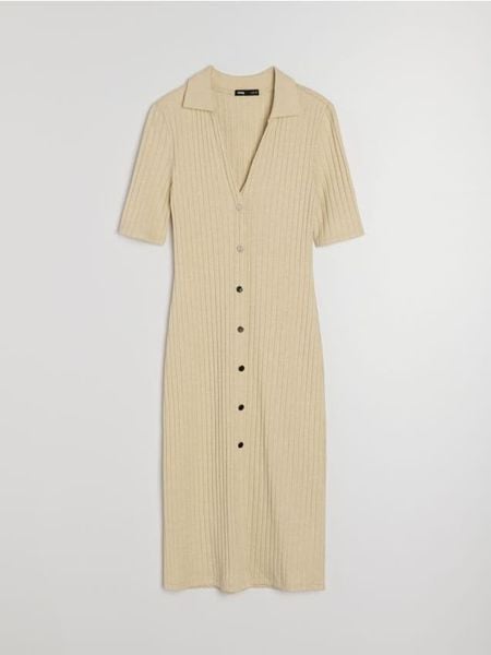 Sinsay – Dzianinowa sukienka w prążek z domieszką wiskozy – beżowy –