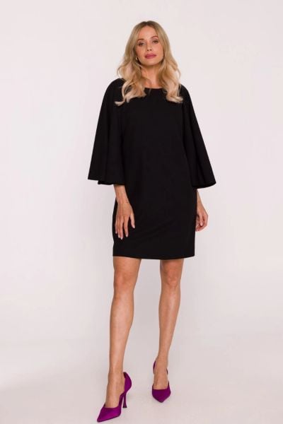 Elegancka sukienka trapezowa z bufiastymi rękawami czarna