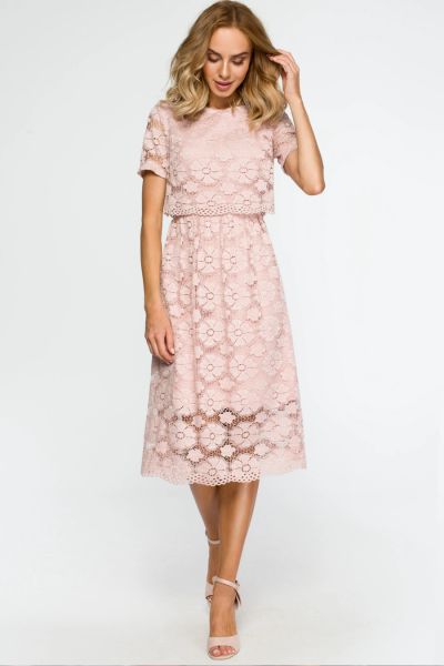 Sukienka na wesele koronkowa rozkloszowana pudrowy róż