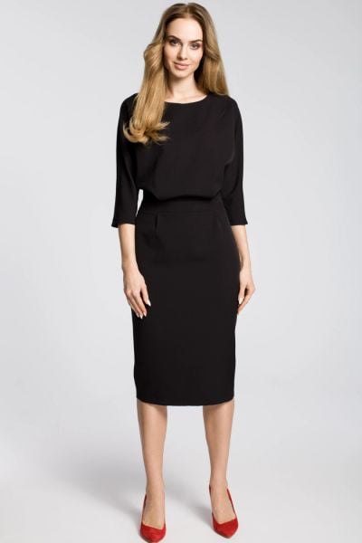Sukienka elegancka midi kimonowa góra dopasowany dół czarna