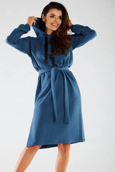 Bluzowa sukienka z kapturem bawełna premium niebieska