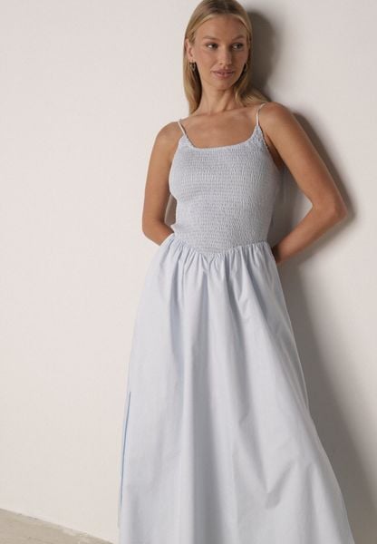Jasnoniebieska Sukienka z Bawełnianej Tkaniny z Wiązanymi Ramiączkami Esthenis