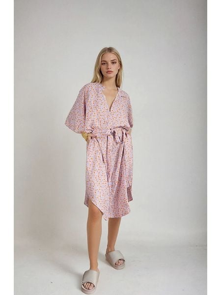 – czysta wiskoza- kołnierz: stójka- dekolt: V- zapięcie: listwa guzikowa- zdejmowany pasek: tkanina- kieszenie: wpuszczane- dolny brzeg: zaokrąglony- krój: prosty- wzór: kwiatowy