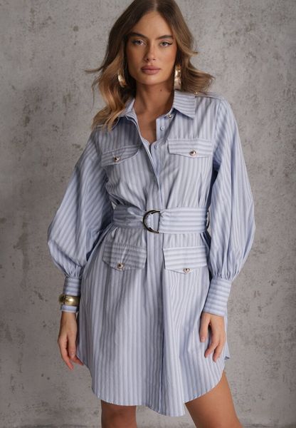 Niebieska Koszulowa Sukienka z Bawełny z Paskiem w Stylu Soft Utility Effiara