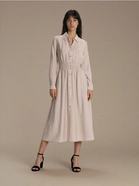 Sinsay – Wiskozowa koszulowa sukienka midi z ozdobnym marszczeniem – szary –