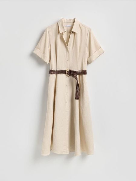 Sukienka o lekko rozkloszowanym kroju, wykonana z lnu i wiskozy.