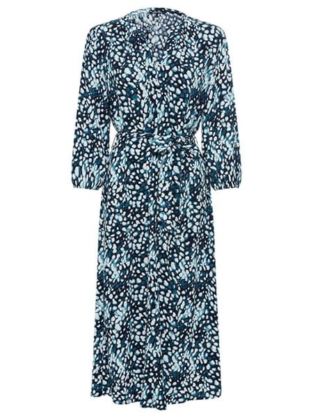 – czysta wiskoza- dekolt: z rozcięciem- zakończenie rękawów: elastyczne- zdejmowany pasek: tkanina- krój: litera A- wzór: na całości