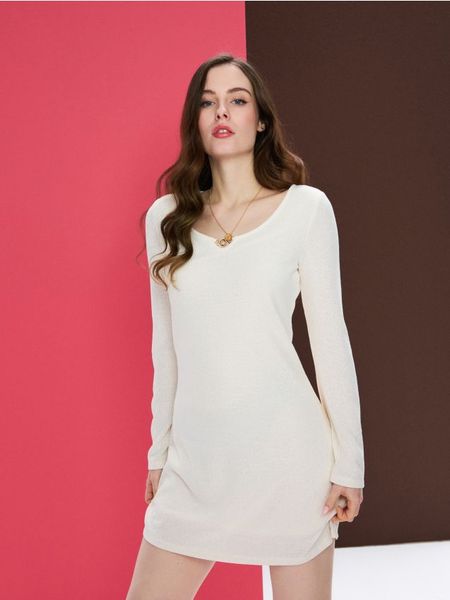 Sinsay – Dzianinowa sukienka mini z długim rękawem – kremowy –