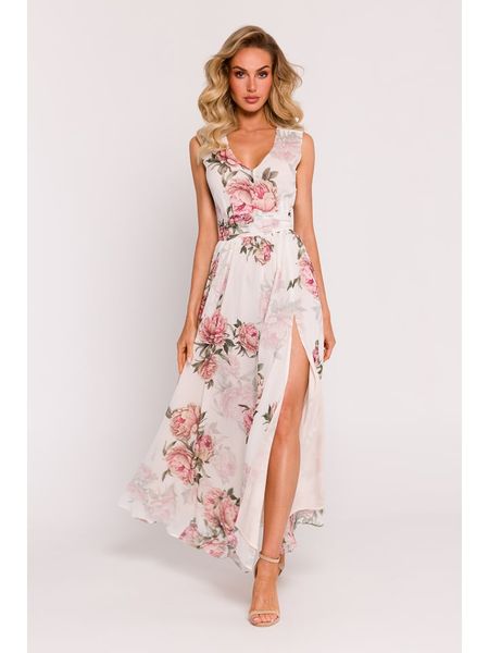 – dekolt: V- dolny brzeg: z rozcięciem- krój: taliowany- wzór: kwiatowy