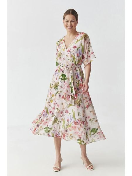 – dekolt: V- krój rękawów: motylek- zdejmowany pasek: tkanina- krój: prosty- wzór: kwiatowy