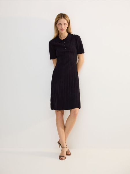 Sukienka o prostym kroju, wykonana z prążkowanej dzianiny z wiskozą.