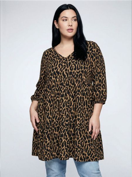 Sukienka we wzór w panterkę Plus Size – wielobarwny