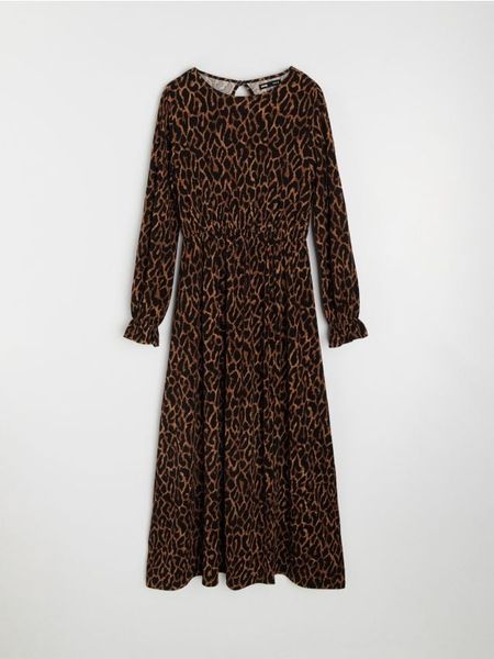 Sinsay – Sukienka midi w panterkę – brązowy –