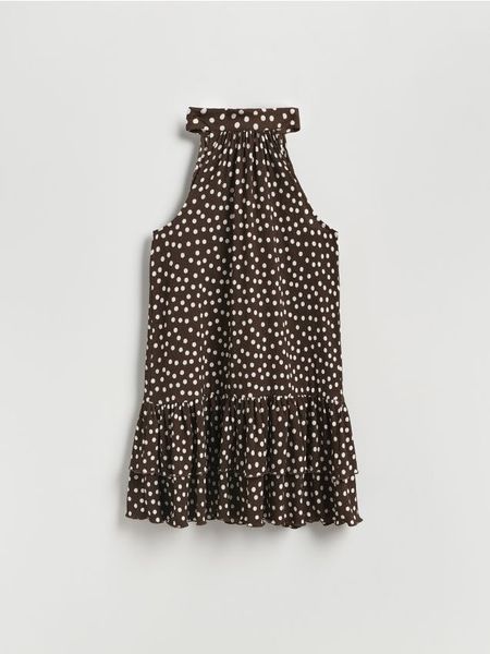 Sukienka mini w groszki – ciemnobrązowy
