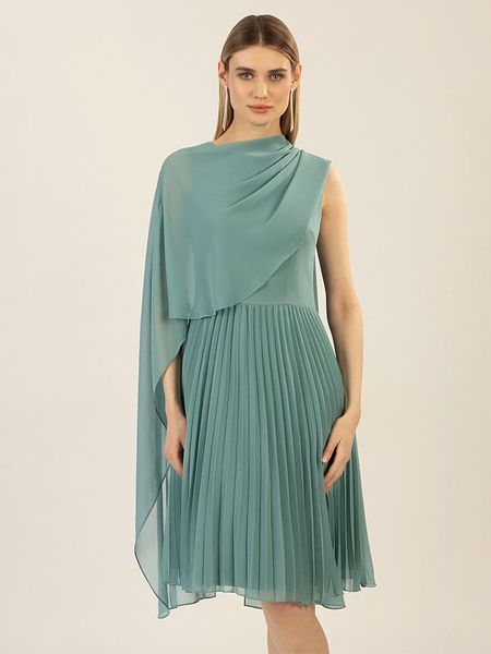 – dekolt: okrągły- zapięcie: suwak na plecach- krój rękawów: nietoperz- detale: plisy- krój: prosty- look: jednokolorowy, warstwy