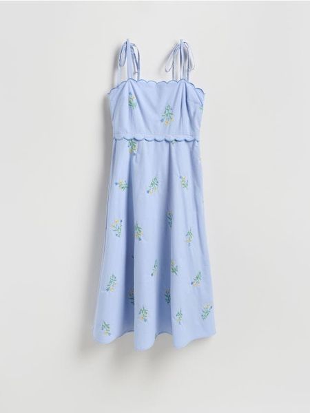 Bawełniana sukienka z haftem – jasnoniebieski