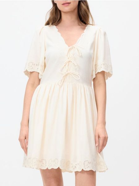 Sukienka z dodatkiem lnu – kremowy