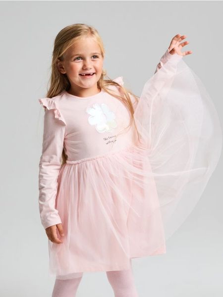 Sinsay – Sukienka z tiulem i ozdobnymi falbanami – różowy –