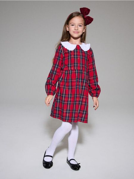 Sukienka w kratę z bawełnianym kołnierzykiem – wielobarwny
