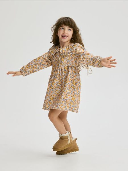Wzorzysta sukienka z kołnierzem – wielobarwny