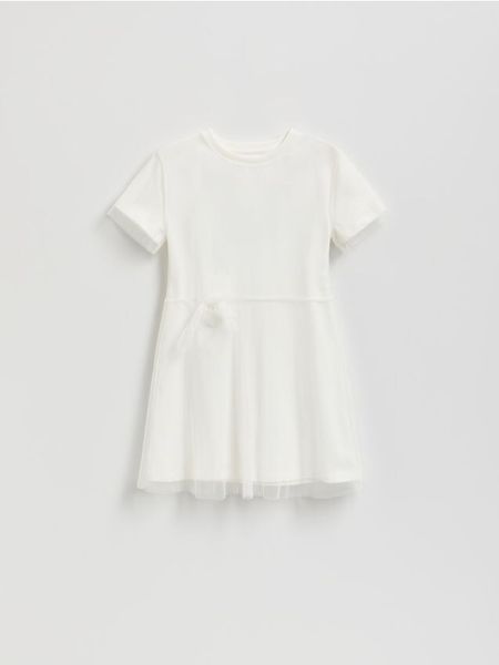 Tiulowa sukienka – złamana biel