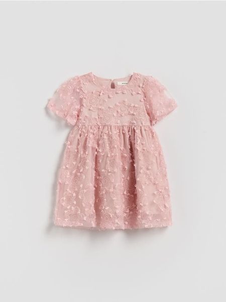 Tiulowa sukienka z haftem – pastelowy róż