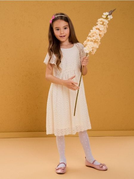 Sinsay – Sukienka bombka z haftowanym wzorem – kremowy –