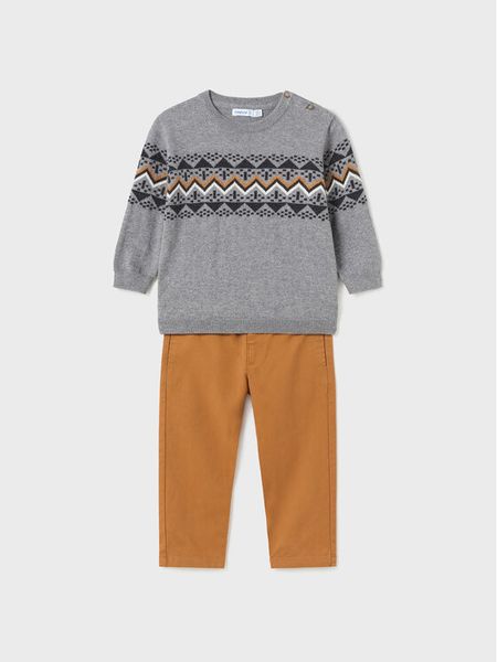 Mayoral Komplet sweter i spodnie materiałowe 2.544 Brązowy Regular Fit