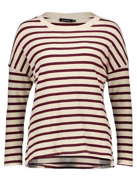 – z dodatkiem bawełny- dekolt: okrągły- ściągacz: dekolt- krój rękawów: nietoperz- krój: prosty- wzór splotu: ścisły- wzór: paski