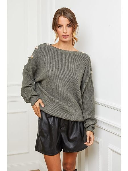 – z dodatkiem kaszmiru- dekolt: łódka- ściągacz: dekolt, zakończenia rękawów- wzór splotu: luźny- detale: ozdobne guziki- krój: oversized- wzór: melanżowy