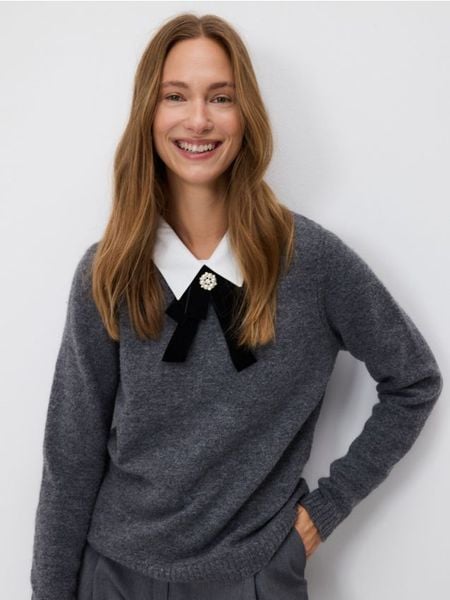 Sweter z ozdobnym kołnierzem – szary