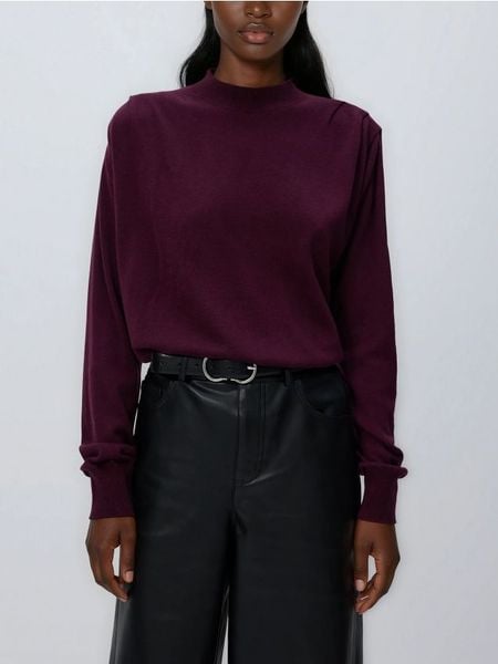 Sweter z zakładkami na ramionach – ciemnofioletowy