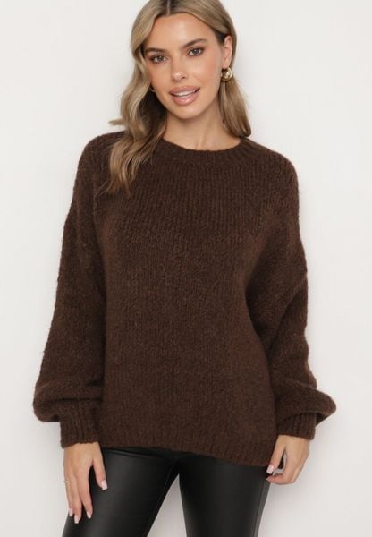 Brązowy Sweter o Klasycznym Prostym Kroju z Domieszką Wełny i Wiskozy Sezisya