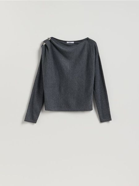 Sweter z błyszczącą aplikacją – ciemnoszary