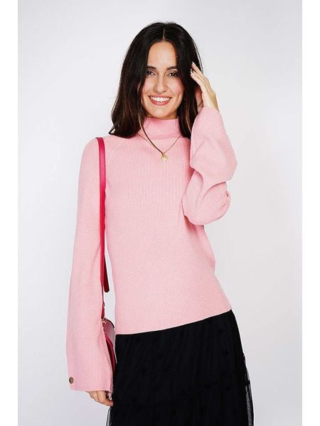 Jasnoróżowy Sweter z Bawełną z Prążkowanego Materiału Ozdobiony Guzikami Zinfera