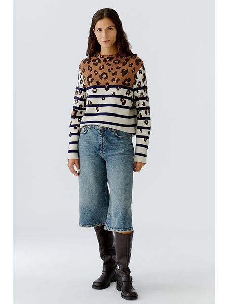 Oui Sweter w kolorze kremowo-granatowo-karmelowym rozmiar: 42