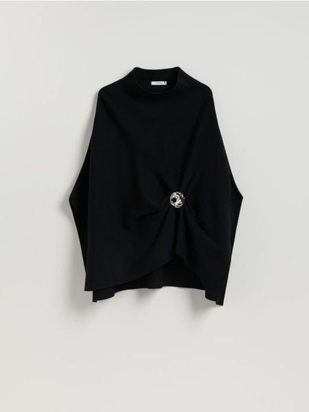 Sweter o kroju ponczo, wykonany z dzianiny.
