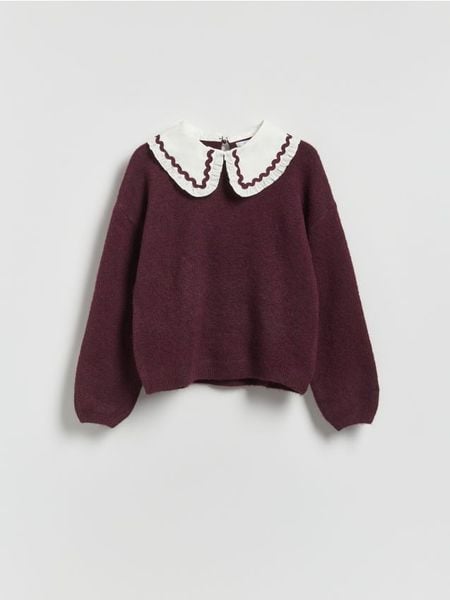 Sweter z domieszką wełny – ciemnofioletowy