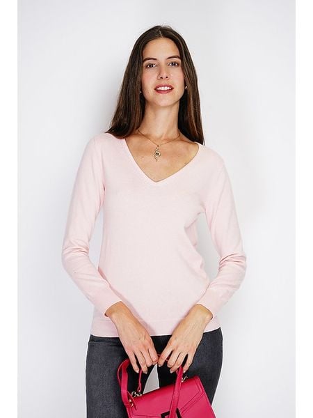 Jasnoróżowy Sweter z Domieszką Kaszmiru z Dekoltem w Serek Feralaine